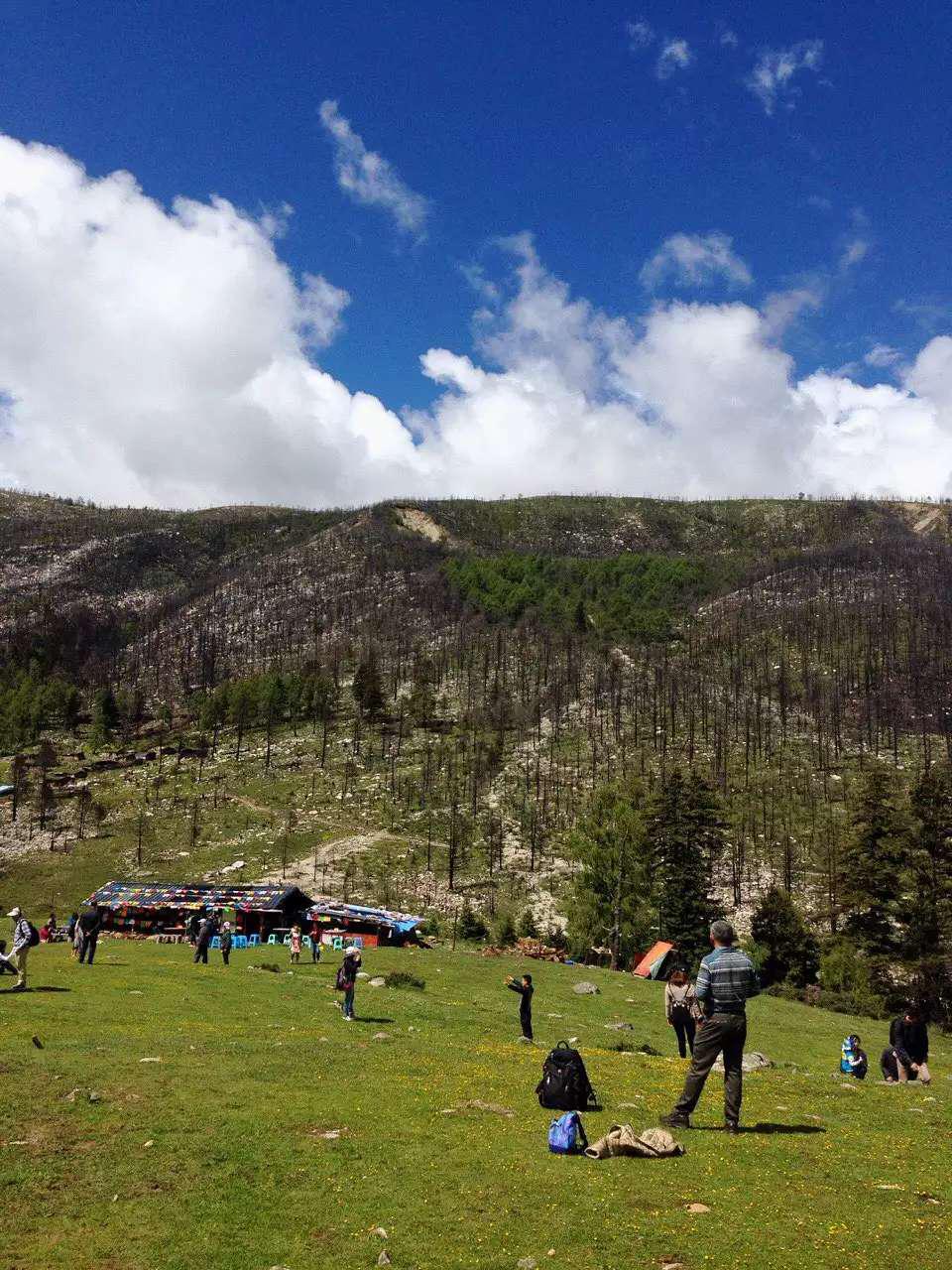 接下来一行人来到了芳草坪,这里像是一面艳丽的地毯,铺在群山密林间。芳草如茵,野花遍地,这里是扬鞭跃马和耍坝子的天然乐园。
